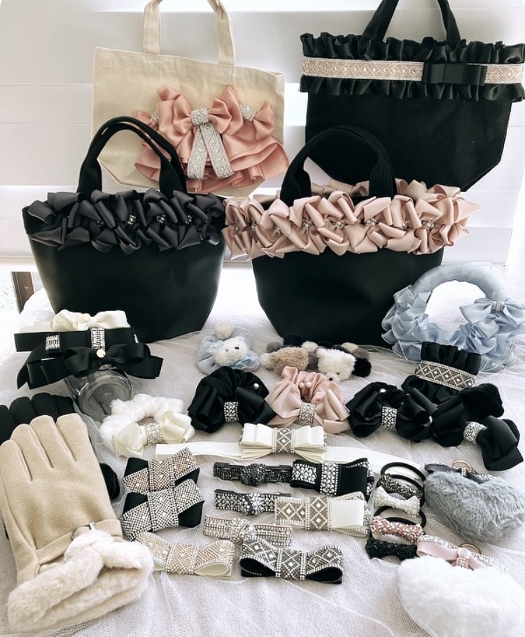 キラキラ輝くビジューやリボンを使ってハンドメイドでアクセサリーや雑貨を作っています。