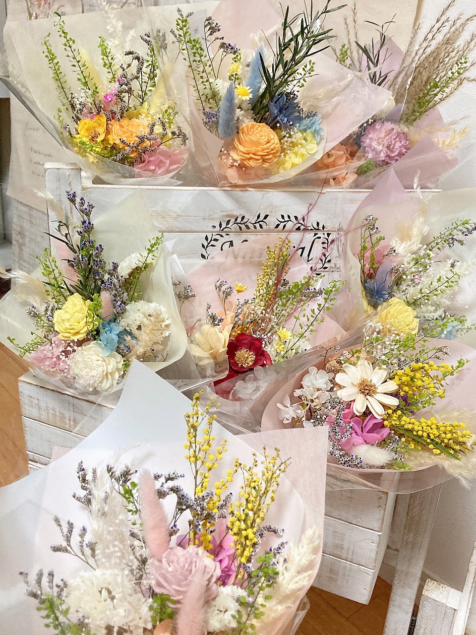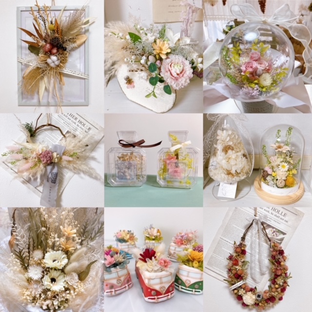 薩摩川内市でドライやブリザーブドフラワーを使った花雑貨を制作・販売しているブーケ工房Flowerです。