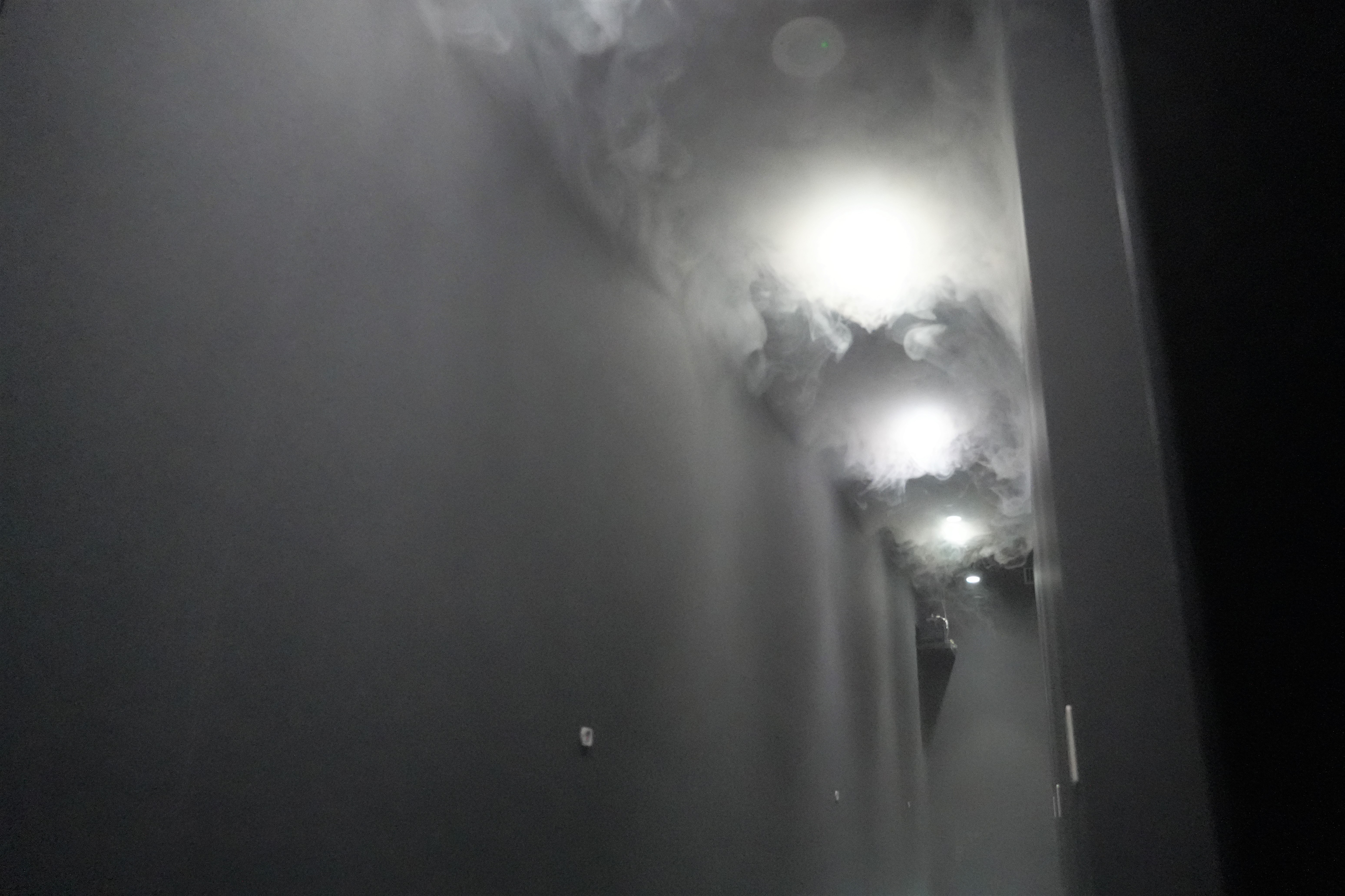 実際に火事になった際、移動の注意点を知っていただくために、煙の体験コーナーがございます。