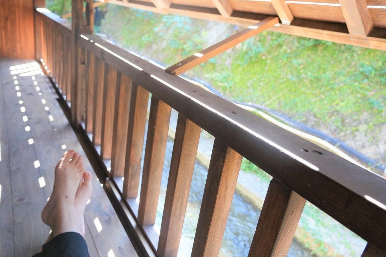 この川のせせらぎと、緑。そして、風と太陽の光を存分に感じていただきたいと思い、心地よい空間をつくりました。