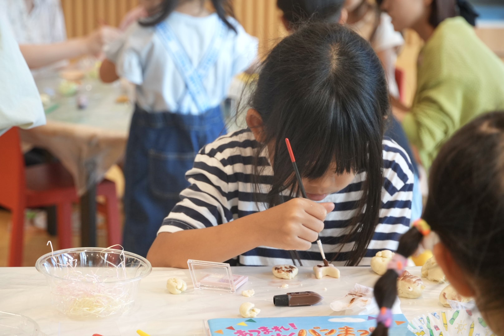 本物そっくりのパンができるかな?と子どもたちだけでなく大人も夢中になって楽しむ様子