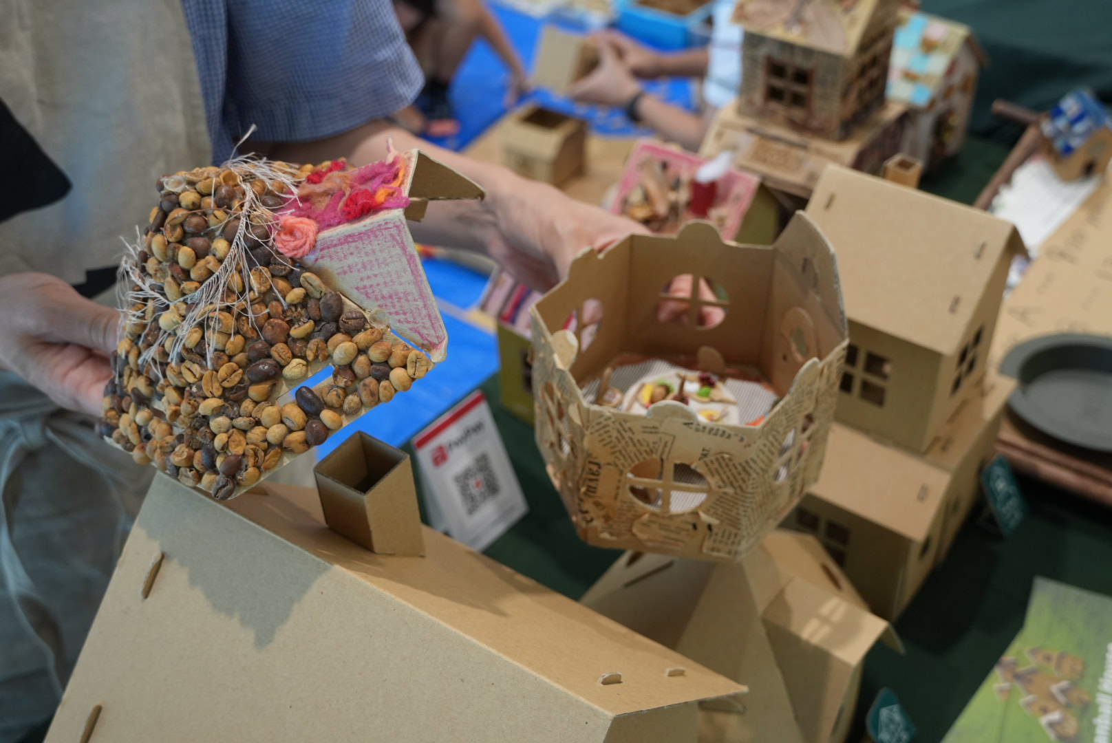 2つと同じものができないミニチュアダンボールハウスに夢中になる親子の姿が印象的でした。